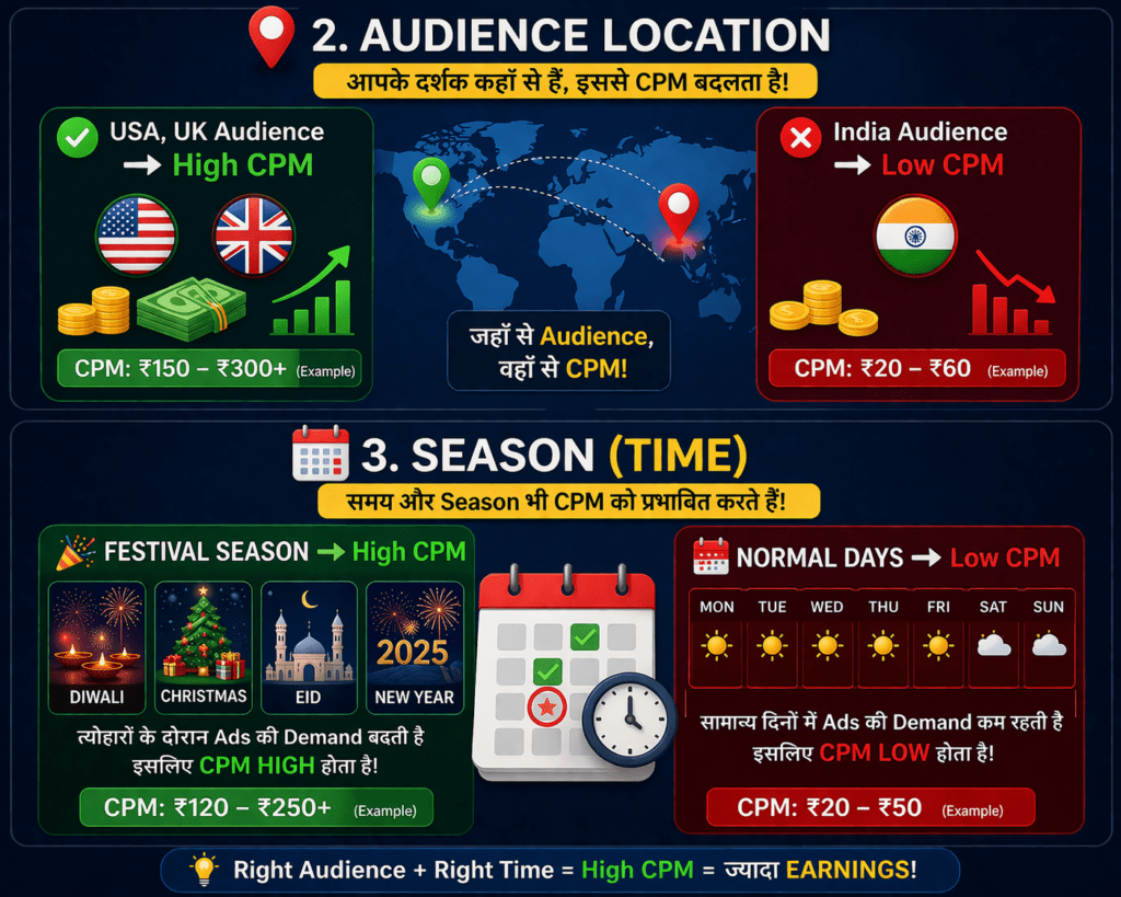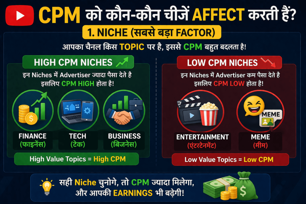 1. Niche (सबसे बड़ा factor) -YouTube Earnings stratedgy is CPM & RPM